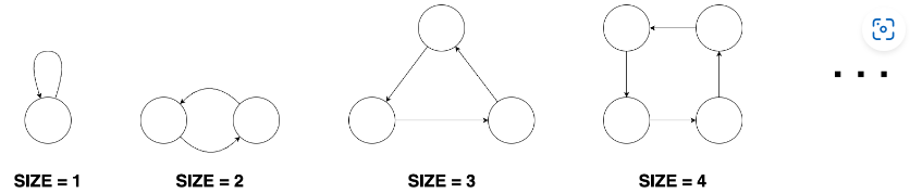 크기가 2인 경우는 들어오는 간선, 나가는 간선이 각각 1개인 정점이 없다.