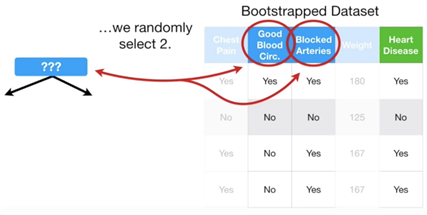 다음으로 데이터로부터 decision tree를 성장시킬 때 feature에 대해 information gain이 가장 큰 feature를 선택하여 성장시켰는데 random forest는 데이터의 모든 feature의 information gain을 비교하지 않습니다.