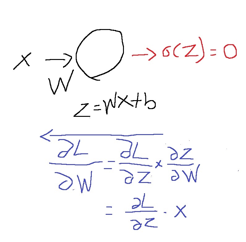 모든 $X$가 양수라고 가정해보고 단층신경망에서 backpropagation을 생각해보자.