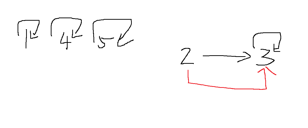 그리고 2,3이 들어온다고 하자. 2 > 3으로 연결시키는데