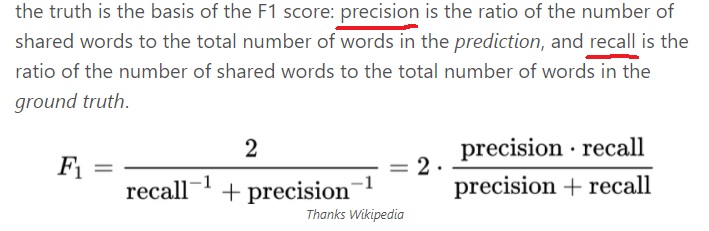 recall은 겹치는 단어 수/정답 문장의 단어 수이고 precision은 겹치는 단어 수/예측 문장의 단어 수