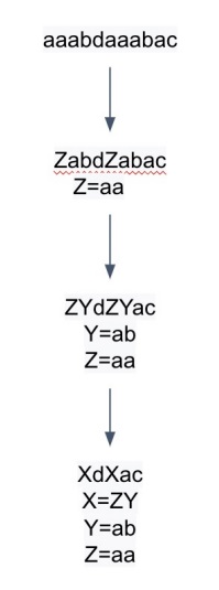 aaabdaaabac라는 sequence에서 aa라는 bigram이 반복해서 나오므로 Z=aa라고 치환함