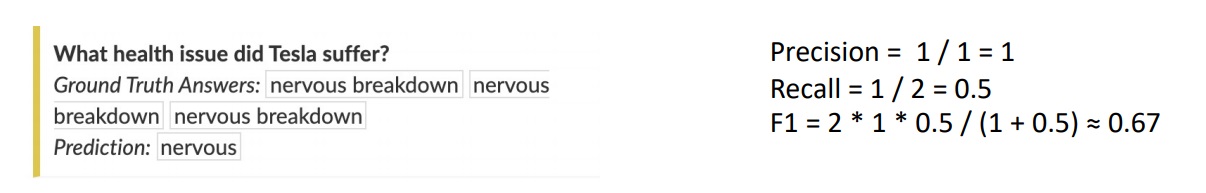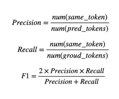 precision은 prediction의 총 token 수에 대해 prediction과 ground truth가 일치하는 token 수의 비율