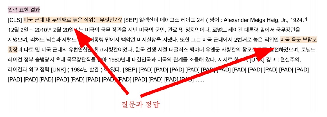 [CLS]는 input의 시작을 나타내는 special token이고 [SEP]는 질문과 지문을 구분해주는 token이다