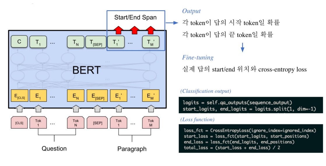 ‘[CLS] 질문 [SEP] 지문’의 형태로 질문과 지문을 하나의 input으로 합쳐서 tokenizing을 함