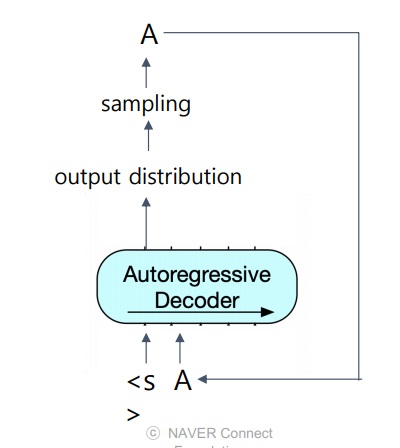 이전 step의 출력을 다음 step의 input으로 넣어 하나씩 단어를 생성