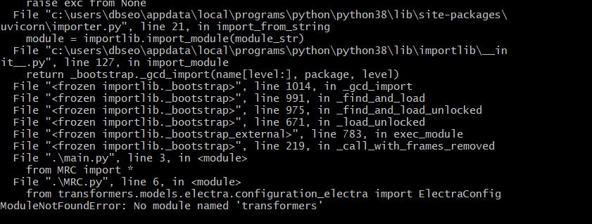 'transformers'를 못찾는다며 ModuleNotFoundError가 일어난다
