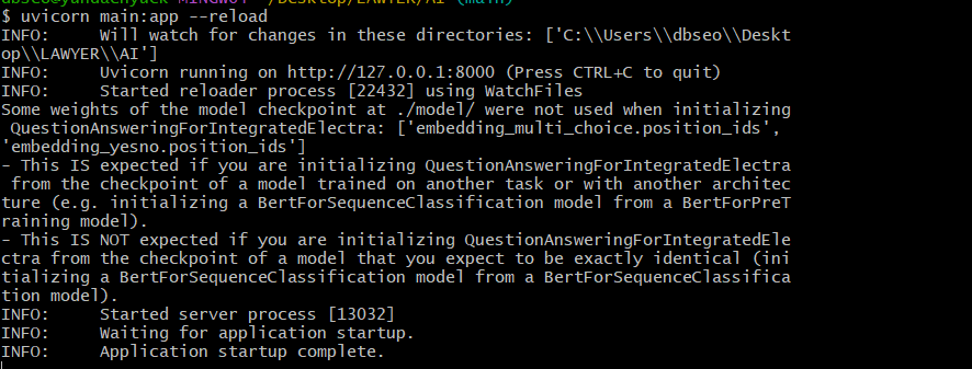 다시 한번 uvicorn main:app --reload를 실행하면 에러가 없다