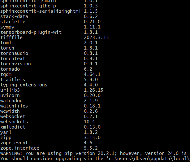 가상환경에는 uvicorn, fastapi가 설치되어있지 않다는 것을 파악했다