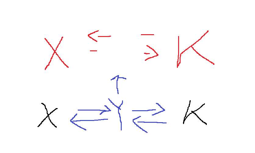 right[X] = Y, right[Y] = K, left[Y] = X, left[K] = Y