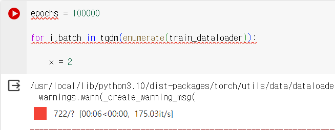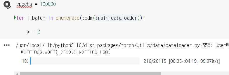 반대로 enumerate(tqdm(train_dataloader)) 형태로 사용하면 어느정도 남아있는지 보여줌