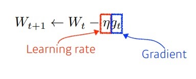 가중치에 그래디언트와 learning rate의 곱을 빼면서 update한다.