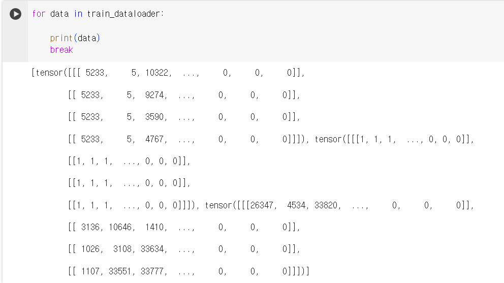그래서 이렇게 토크나이징할때, max_length로 padding을 해주고 dataloader를 만든다면..