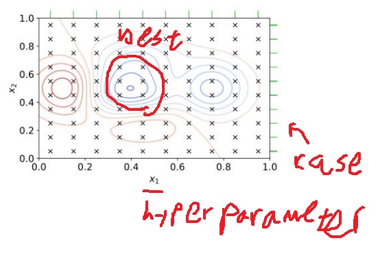 X1, X2가 hyperparameter고 초록색이 사람이 설정한 hyperparameter case임