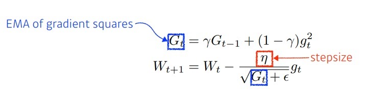 RMSprop는 geoff hinton이 강의에서 그냥 써보니까 잘 되더라는 식으로 이야기한 방법이다.