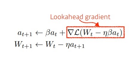 그러면 일단 그 곳에 간 뒤에 gradient를 계산하자는 새로운 방법이 제안되었다.