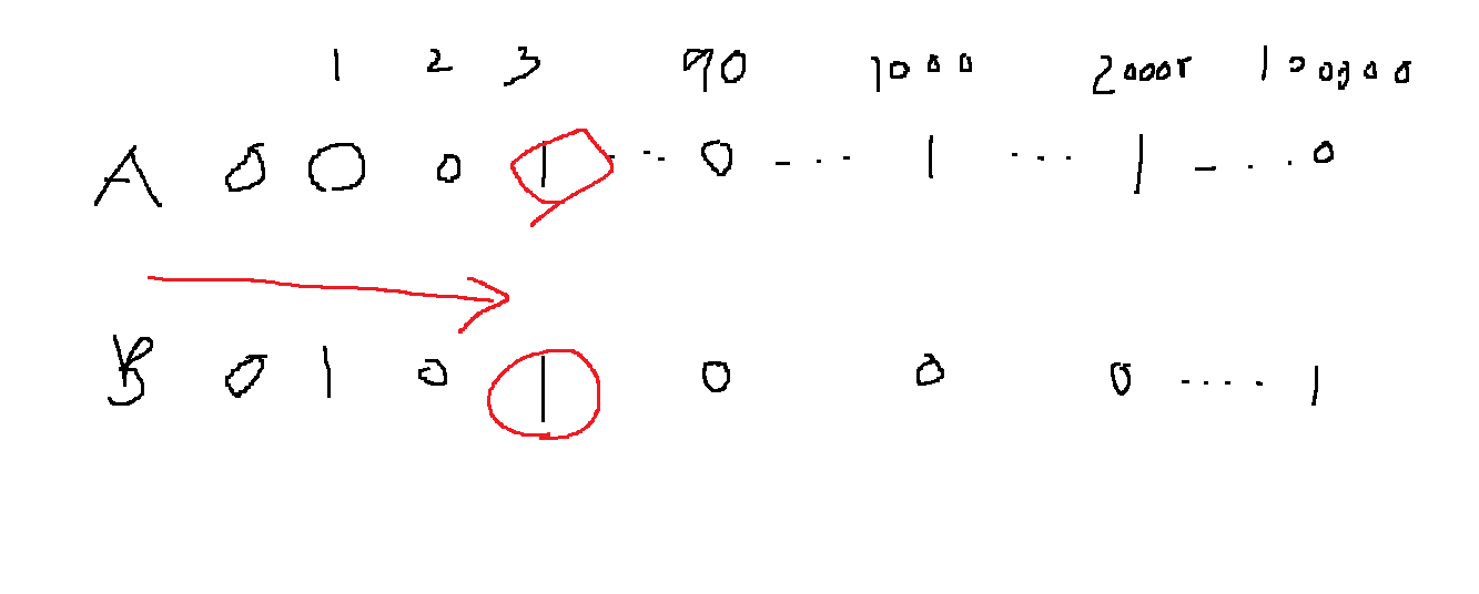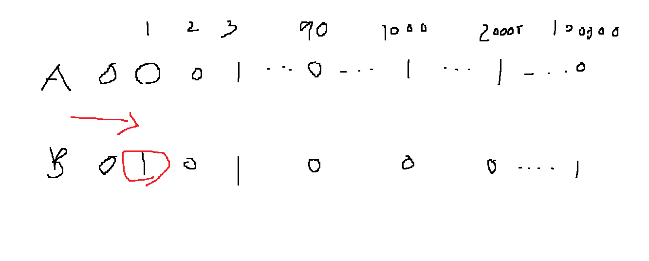 예를 들어 A = [1000,90,3,20000], B = [1,3,100000]