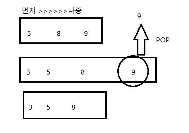 먼저 들어간 9가 가장 먼저 빠져나가는 모습