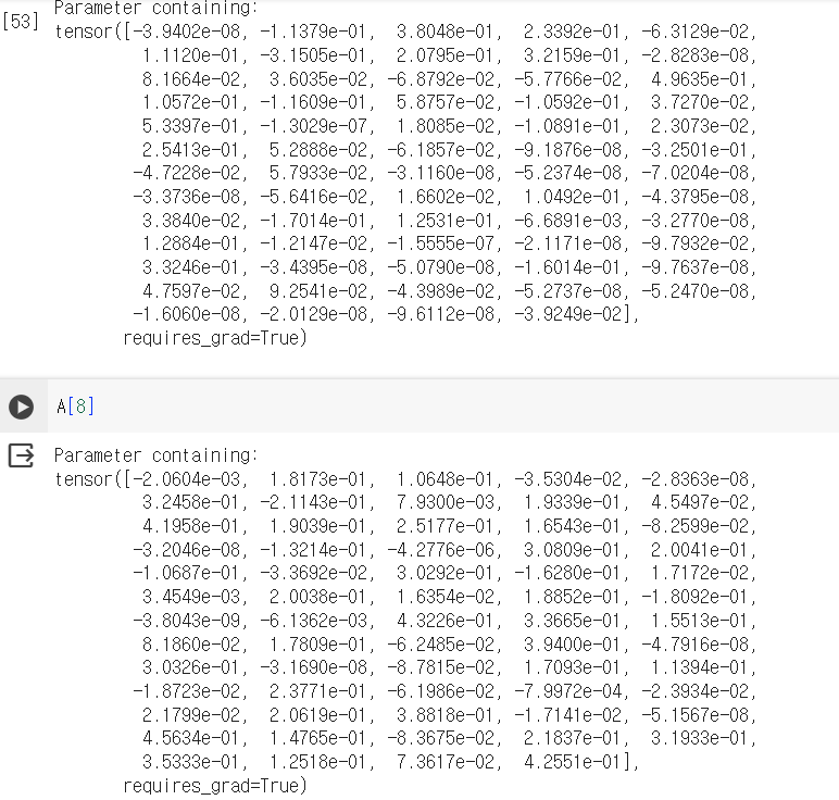위와 같은 두 텐서가 있을때, 서로 같은지 알고싶다..