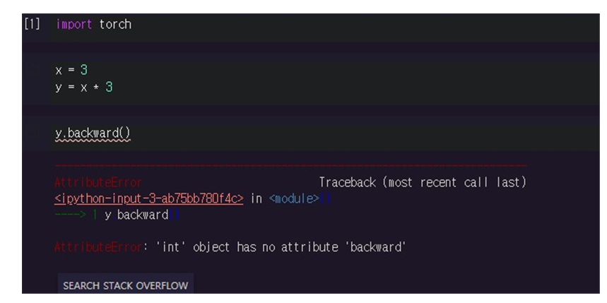 tensor가 아닌 그냥 scalar를 쓰면 backward를 할 수 없다는 에러가 남