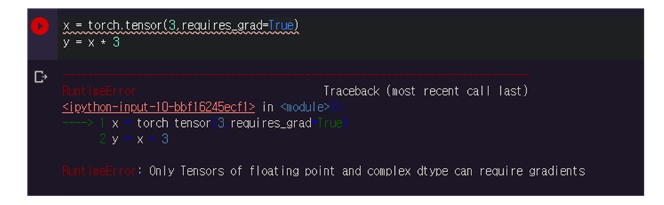 float tensor가 아니면 requires_grad 조차도 할 수 없다