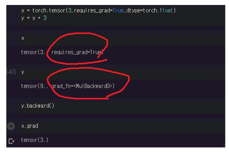 참고로 require_grad=True이면 tensor를 출력할 때 grad_fn = <> 같은 정보가 나타남