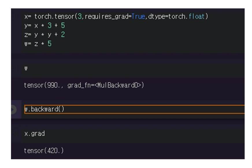 모든 조건에 맞게 backward를 통해 $\frac{dw}{dx}$를 계산하면