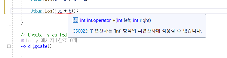 참고로 할당연산 a = b로 하고 Debug.Log(a = b)를 해본다면?