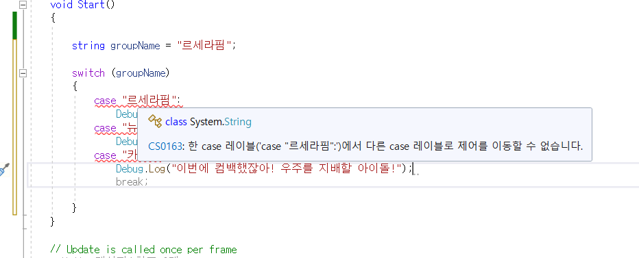 참고로 C#에서는 case와 case 사이에 break를 반드시 써야함