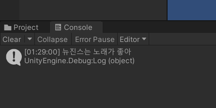 Debug.Log("뉴진스는 노래가 좋아");