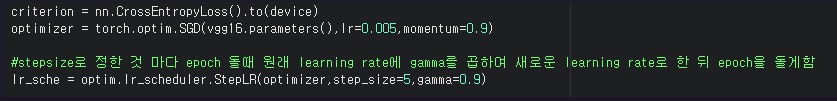 scheduler.step() # epoch마다 learning rate update