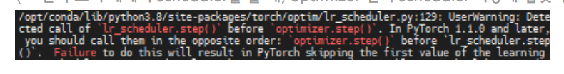 optimizer.step() 다음에 scheduler.step()을 사용하는 것이 좋다.