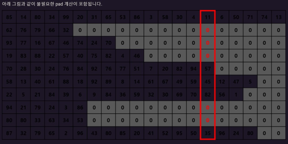 그러면 이제 위에서부터 아래로 계산만 하면 되니까 pad를 계산할 필요가 없어진다.