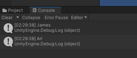 Debug.Log(names[1]);