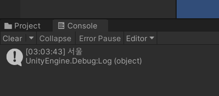 Debug.Log(cities["한국"]);