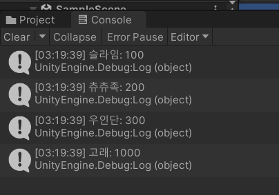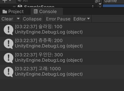points.Add("슬라임", 100);