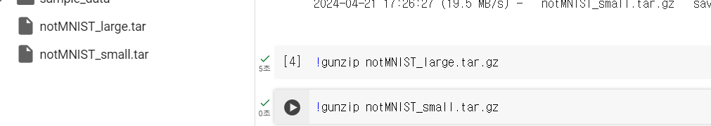 .tar.gz 형태로 압축이 되어있는데, gz 형태의 압축은 !gunzip으로 압축해제가능