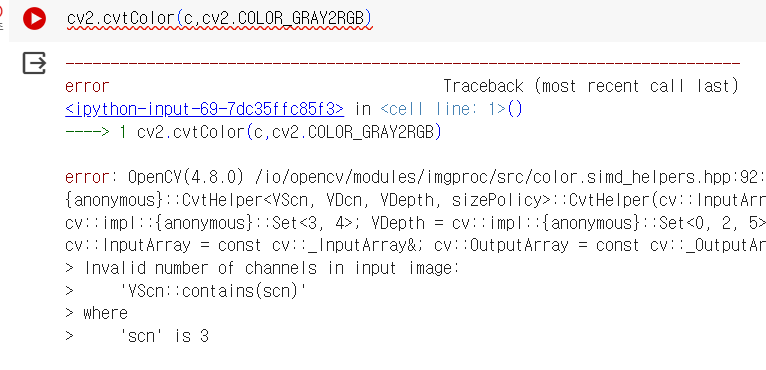 gray image니까 cv2.COLOR_GRAY2RGB 이렇게 바꿔볼려고하면 에러가 난다