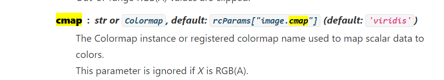 마지막에 이런 문장이 있는데, X가 RGB image면 cmap을 무시한다고 한다