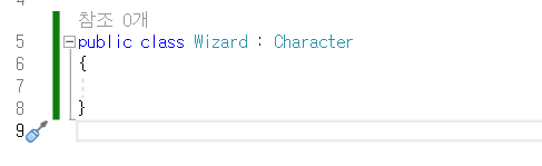 이렇게 하면 Character이라는 class를 상속받아 Wizard라는 class를 만든다