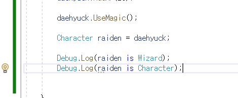 새로 만든 raiden은 Character인가? Wizard인가? is 연산자를 이용해 다음과 같이 표현할 수 있다