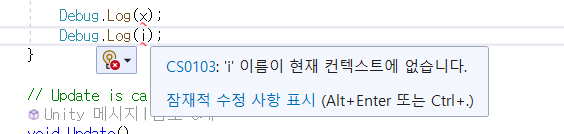 for문 밖의 x에 빨간줄이 그어지는데