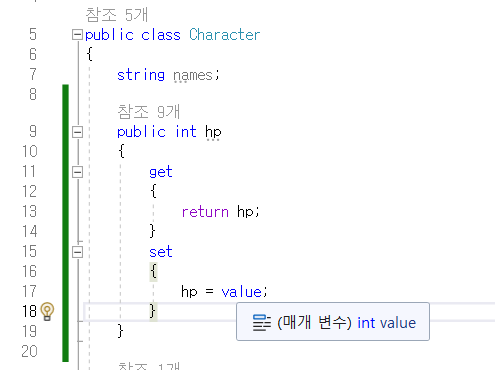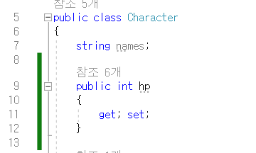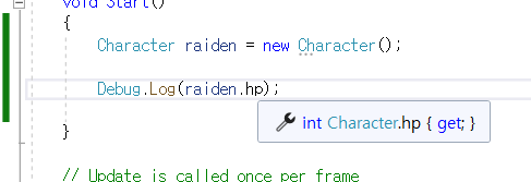 다른 방법으로는 다음과 같이 private int hp; public int HP; 2가지 변수를 설정하고