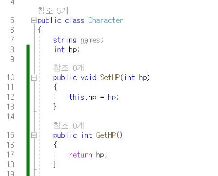 다음과 같이 GetHp()와 SetHP(hp)를 정의
