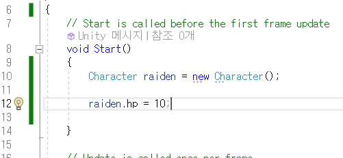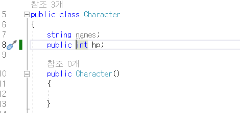 만약 멤버변수를 public int hp;로 설정하면?
