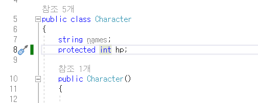 Character class의 hp를 private으로 바꾸고