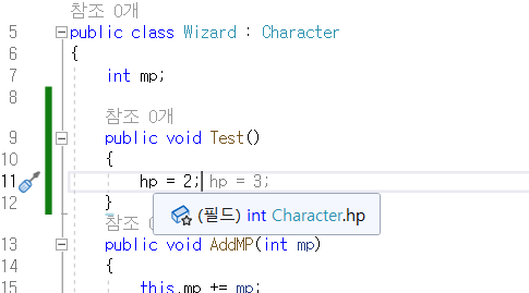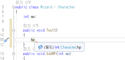 하지만 private와는 다르게 자식 클래스 Wizard에서는 hp에 접근할 수 있다