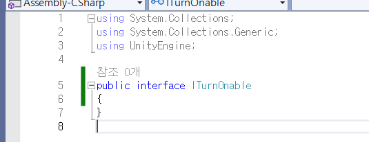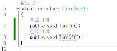 public interface ITurnOnable로 class 말고 interface라고 선언
