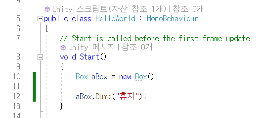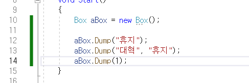Box class를 하나 만들고, Dump method에 "휴지" 하나만 준다면?