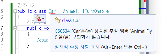 그래서 구현하지 않으면 이렇게 빨간줄이 그어져있다